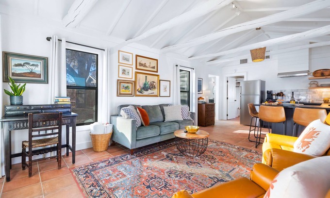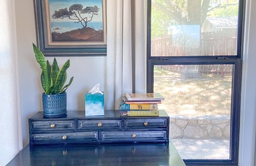 Looking for a romantic getaway at a one-of-a-kind property? Carmel Cottage is waiting for you to enjoy the Texas Hill Country during the day, and at night, unwind in your own hot tub on the patio with a gas grill and fire pit, overlooking the lake at Basecamp Resort! Our dark skies offer excellent starry night viewing and our 3-acre lake is set up for adventure with fishing (catch and release), kayaking, and swimming. You can bring a pole and some bait and explore 3 other ponds along our hiking trail. We also provide kayaks and paddleboards for your use at the lake. All that and Guadalupe River access is less than 1/4 mile away!