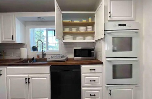 You will be welcomed by our open spacious living room with 75" flat screen TV for movie watching & playing board games. (Peacock tv is included but bring your other logins please.)