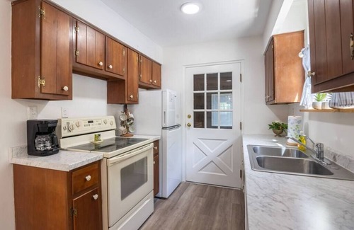 - A dining area and fully stocked kitchen, equipped with essential cookware, dishes, and utensils for easy meal prep