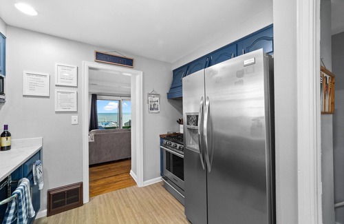 Welcome to our home! It is a two bedroom, one bath, ranch with a basement that has been transformed into a functional living space. After a long day of enjoying Lake Erie, you and your guests can rest your bones in our newly updated bedrooms. The cozy master bedroom offers one queen bed and the spare bedroom offers one full bed, where you will wake up to a stunning view of the lake. You can also enjoy this same spectacular view from the large sliding glass door in the living room, which provides an additional queen bed in the pull-out sofa sleeper. When it is time to enjoy everything this property has to offer, you can enjoy a day on the lake from the beautiful back yard on one of our two decks, which offer private, walk-in lake access. Most importantly, dont forget to take in the breath taking sunsets at the end of each day!