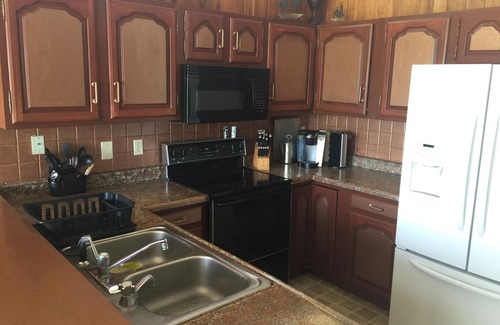 There is a massive stone gas fireplace in the center of the house that can be turned on via remote control. There is a large sectional sofa as well as a futon with full bed. The kitchen is fully stocked with pots, pans, cups, bowls, and all the utensils you will need. Some of the other amenities include: a deep freeze, Netflix, a washer, a dryer, a dishwasher and keurig coffee maker.