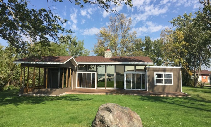 Stunning views are what you get from this South Dakota lake home with water on 3 sides. The walls of the living room / kitchen area are all floor to ceiling glass!