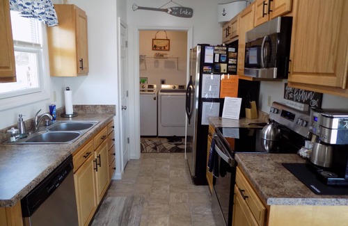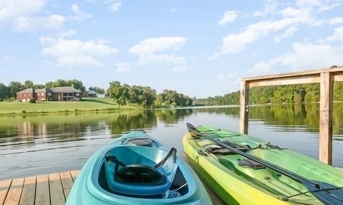 Enjoy our charming lake house between the Ark Encounter and Creation Museum. The main floor has two beds and a full bath. The lower level features two more bedrooms, another full bath, a lounge area, foosball, and air hockey table . Outside, enjoy a private dock, kayaks, rowboat, paddle boat, and beautiful lake views. Relax on the deck, gather around the cozy fire pit or enjoy the hot tub overlooking the lake. This is a perfect spot to unwind and make memories—book your stay today!
