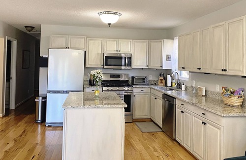 We invite you to come and enjoy your own private get-a-way at Magnolia on Murray. It's a three-bedroom house with 2.5 bathrooms. There is a queen bed in 2 bedrooms and a twin bed & twin bunk beds with a trundle in the third bedroom. Appliances include a full-size stainless refrigerator, gas stove/oven, microwave, and coffee maker. House has central heat and air and a propane grill for outdoors.