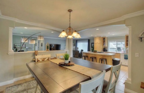 Inside our beautifully appointed home you’ll find ample seating for your family. a gas fireplace, forced air heat and AC, a large cable TV, Keurig coffee, microwave, convection air fryer, a beautiful kitchen and luxurious bedding. We can provide a pack and play and highchair. All the rooms are large and comfortable. The outdoor area is a great place to hang out, eat and BBQ. Working as you travel? We have high speed internet.