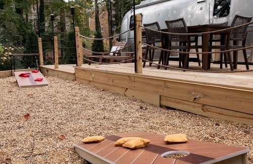 Only 10 minutes to The Battery and 20 minutes to Atlanta’s top spots, The Tranquil Airstream offers the perfect blend of city convenience and peaceful retreat. Tucked behind our home with private access, this thoughtfully renovated 2005 Airstream Classic is set beside a custom-built deck overlooking a serene lake — perfect for relaxing, reconnecting, and making meaningful memories.
