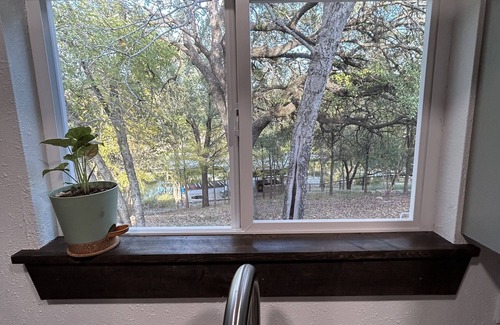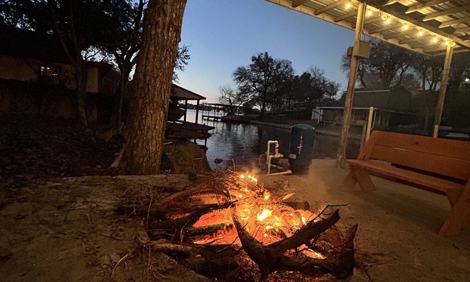 Relax and recharge at this cozy piece of paradise! Imagine your morning coffee on the patio while watching the waves. This gorgeous country like setting is only 2 miles from historic Granbury square but you will feel like you're out in the country. Enjoy the benefits of camping but the luxuries of home. Bring your jet skis to the large covered dock and enjoy the fire pit, bbq while watching the game on the lakefront 55” tv. You can relax while fishing from the dock or the kayaks. When weather permits you can enjoy the kayaks and a stand up paddle board or swim from the dock. You’ll never want to leave this peaceful place! This charming 310 square foot cabin is lakefront but sits behind a main house and next to a workshop. You will have your own fire pit, grill and patio furniture but have SHARED access to a hot tub (ONLY available November through March), outdoor dinning area, bigger fire pit on the large dock kayaks etc. We share the property with a variety of wildlife (to include coyotes and foxes) so it is NOT recommended to have your dog out of your sight. The 2100+ sq foot dock has seating, 4 jet ski lifts and a boat slip. In addition, there’s a woodworking workshop on the grounds we may be working in so feel free to come in & see what we’re working on! You will have your own private patio/fire pit & grill. The grounds are big enough for both places! It’s a very serene setting. *Please note: we love to have your well behaved furry family member. HOWEVER- you must add it to the booking. we do NOT allow cats due to allergies.. * We are conveniently located with so many things within 10-15 minutes!
