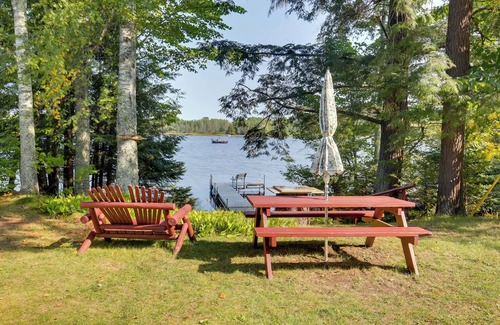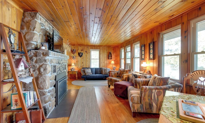 Looking for a tranquil escape to get away from everyday life? Look no further than this 2-bedroom, 1-bathroom vacation rental cabin situated right on a lake in Mercer, Wisconsin. Take in water views from the deck as you sip your morning coffee, warm up by the cozy fireplace with a book, fire up the grill for a cookout, or prepare home-cooked meals together in the well-equipped kitchen. Choose from fishing, hiking, and more in the far-reaching wilderness of the 74,500 acres of public forestland.