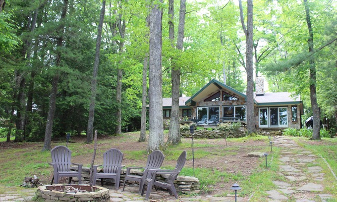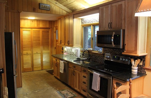 This recently updated 1960’s bungalow was one of the original properties on Harvey's Peninsula Rd, owned by the Harvey sisters. It's stone and wood charm combined with lake views and the wooded setting are the perfect ingredients for a mountain lake getaway! It's 3 bedrooms, 2 bathrooms and full size pull out couch, which have all been recently updated, will sleep 9 people easily. The large kitchen, which has been recently remodeled opens into the great room and overlooks the deck and Deep Creek Lake. There's not a better place to start your mornings! During the warmer months, all doors and windows are fitted with screens to be able to enjoy that crisp mountain air, as there is no A/C. Some of the house's features include; all new luxury vinyl plank flooring throughout, wood burning stove, baseboard heat, full stainless appliances, ceiling fans in each room, Smart TVs in each bedroom so you can sign into all of your streaming platforms (There is no cable TV!) fast Wifi, fully equipped kitchen for all your cooking desires- including a Keurig, regular coffee pot, blender, toaster, propane grill, large newly re modeled composite deck with safety railing, plenty tables and chairs, fire pit with chairs, spacious parking area, walkway with steps that lead to our large dock and reclining chairs. We do accept a maximum of (2) dogs, and ask that you are diligent about cleaning up after them. There is a non refundable pet fee, as we have had irresponsible