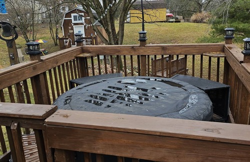 THIS IS THE PLACE TO COME - THE PLACE IS VERY KID FRIENDLY - WITH PLENTY FOR THE ADULTS TO DO. !!- Hot tub to die for? Enjoy a TASTY steak on grill, chill out on the 70ft deck overlooking the beautiful lake. Or maybe the blackout curtains are perfect for a peaceful nap or a good night’s sleep. Kids can enjoy their own private clubhouse that has a lot of things to keep them busy rock wall, a loft to lay around or camp out - - big screen TV with WIFI to play video games or watch a scary movie with their BFF- comes with smoke alarms, security locks & cameras so mom can eaves drop if wanted. Fill your self with laughter on the tire swing, be swept off feet. Adults can enjoy a private hot tub- overlooking the lake -Enjoy the music with the WIFI speakers on deck. Or go down to the dock, relax & stretch out in the plenty of sunshine. The fish are pretty large - biggest so far was about 40 pounds, throw in a line and grab a monster.