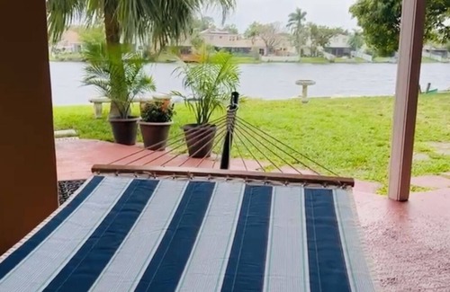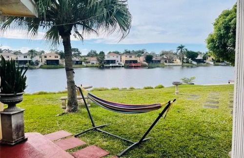 Forget your worries in this spacious and serene space. You have a lake right next to your place to relax and unwind. The lake can be utilized for water activities. You also have shopping centers, restaurants, hospitals that are walking distance. This is a very peaceful neighborhood where neighbors respect each other and their privacy. It’s like living in Key West! Hollywood beach, and Miami is a hop, skip, and step away less the 20 minutes away to be exact. The location is central & convenient.