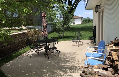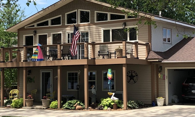Enjoy the entire main floor of our lake home with a separate entrance, total privacy and memorable views of beautiful Black Hawk Lake. Full kitchen, with new refrigerator, new washer and dryer, and fireplace. Well lit and convenient parking. Two patios, both with lake views. Great fishing and boating. Lake View has several great eating establishments and a very nice downtown. We boast having Iowa's first lake to lake 34 mi bicycle trail. Enjoy our Weber grill and an evening lakeside fire. Join the hosts for a scenic and comfortable pontoon boat ride around beautiful Black Hawk lake!