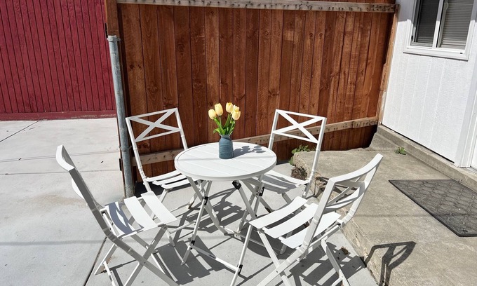 Small House perfect for a stay-cation, features 2 bed 1 bath, nice size back yard to share with family. Enjoy a coffee in our cozy back yard. Full kitchen and Coffee available. Full stove, nice size fridge.