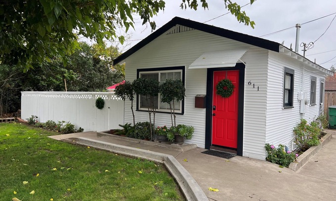 Our cozy little cottage in the heart of Lodi is close to many local attractions. A one bedroom with queen bed, one bath cottage with a fully stocked kitchen and most all the items needed to make your favorite meals. Private backyard with grass area table and chair for outdoor dining. Washer and dryer in outdoor shed. Living room has a flat screen tv and seating for a cozy spot to enjoy your favorite shows. Cottage is in town close to Lodi lake, and wine and Roses. Perfect little cottage for a romantic weekend in Lodi and enjoy the many local wineries.