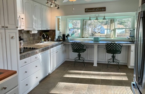 Our peaceful little cottage offers a variety of nooks and crannies to enjoy a nice cup of coffee, read a book, or stream a movie on big screen. Rest in the quiet back yard, or arrange to rent our golf cart and drive to one of two neighborhood beaches, or spend some time sitting on the dock of the Chesapeake Bay (the neighbor hood has three of them!)