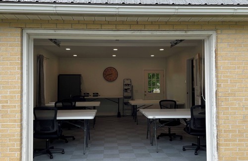 A converted heated and cooled garage provides additional space perfect for paper crafting, scrap booking, quilting or to simply gather.