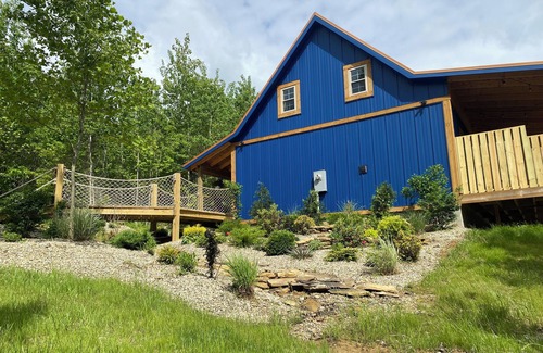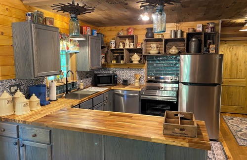The Lodge at Dogwood Ridge Farms. Sleeps up to 6 with a queen bedroom, loft with a king bed and pull out full sofa. The property has everything your family will need from a Hot Tub, fire pit, fire table, gaming table and access to see and feed our Highland cattle and Miniature Donkeys! We are pet friendly with a fenced in astroturf pet run for a maximum of 1 pet per stay up to 50 lbs (accommodations can be made on case by case basis).