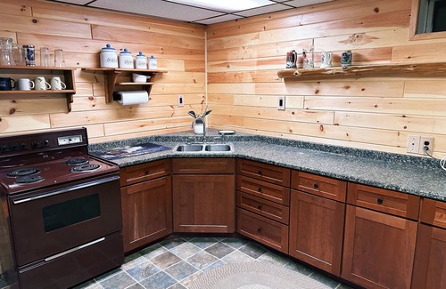 When you arrive at Northern Star Lodge you will be taken aback by the sprawling property boasting towering spruce trees and a lawn that slopes down to our private trout pond. Upon entering the lodge you will notice the decor, pine tongue and groove walls, luxurious seating area and comfortable living spaces. We have heat pumps, baseboard heating but our favorite is the easy to use pellet stove that reminds you that you are in the northwoods, away from it all! Though, we still have city luxuries like high speed internet and streaming services to keep home close while you're away.