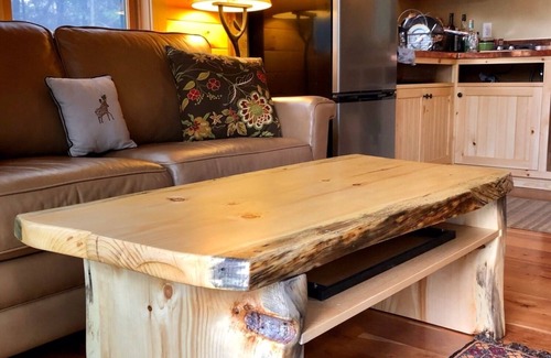 Indoors, there is a mini-fireplace/stove to warm your body and soul after a great day skiing at one of five nearby ski resorts, or just hiking/snowshoeing around the nearby trials. Relax on the leather sofa, connect to the high speed fiber optic internet, watch a fun movie or just gaze at the fireplace flames. Although small, it has all the amenities of any large home, but at just 250 square feet, with the soapstone stove and heated bath floor, it literally radiates cozy intimacy.