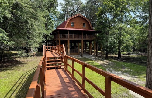 Escape to tranquility at our charming log cabin nestled on the banks of the beautiful Santa Fe River in Branford, Florida. Whether you're looking for a peaceful weekend getaway, an adventurous paddle down spring-fed waters, or a memorable family vacation surrounded by nature—this is your perfect home away from home.