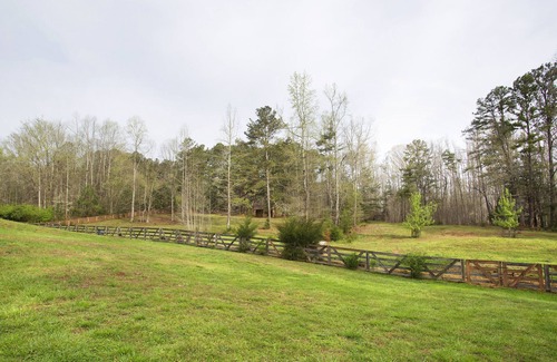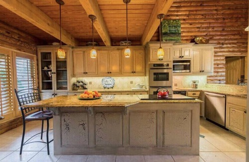 Our 4 bedroom, 3 1/2 bath log cabin is a great place to stay and relax for the week/weekend. Designed beautifully with stone and logs, designer chefs kitchen and floor to ceiling windows with peaceful views of equestrian fenced acreage. The best part of this cabin is the private outdoor sparkling pool and heated hot tub with a stone waterfall feature. Absolutely no large parties are allowed but small gatherings are acceptable. We do have cameras outside (pool/hot tub area, front of garage area, front gate.) We are a Wedding and Events venue, but if the cabin is booked there will not be any other events going on. We also have a farm full of different kinds of animals! You are welcome to bring vegetables and fruit if you want to feed them :-)