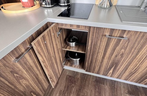 The kitchen has a fridge, a hob, an oven, a kettle, a freezer and a microwave.