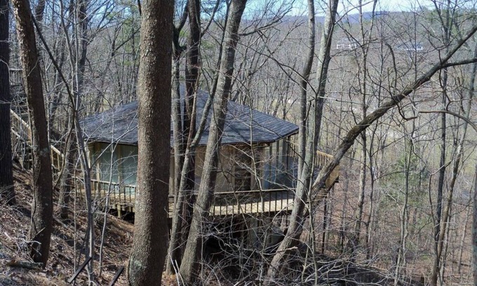 Creekside Cabin is a unique octagon home tucked into the side of the mountain at Bryce Resort in Basye, Virginia. The cabin offers all of the comforts of home for your enjoyment while visiting this beautiful part of the country. Floor to ceiling windows allow for your eyes to take in all of nature's beauty. Stoney Creek runs through our property and the peaceful water can be heard from the deck that surrounds the home. Views of Great North Mountain and the Bryce Resort are just outside.