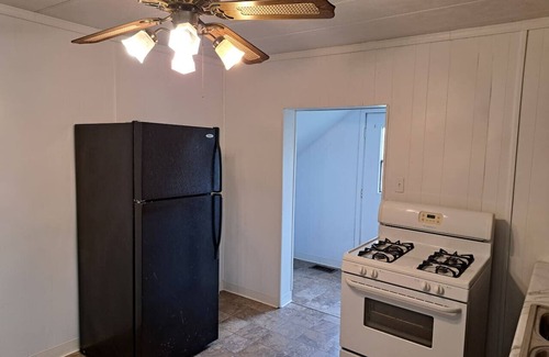 Stay in a historic building that was converted into cozy apartments. This recently remodeled apartment is perfect for traveling professionals. One bedroom has a full size bed along with an office space. There's a queen sized bed in the primary bedroom. There's a large television in the living room and another television in the primary bedroom. This apartment also has private access to the large backyard.