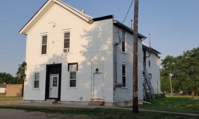 This is unit 2 in a 4-unit apartment building. The building was originally a Masonic lodge built in the mid 1800's. It is located at the middle of a very small farm town in Magnolia, IL.