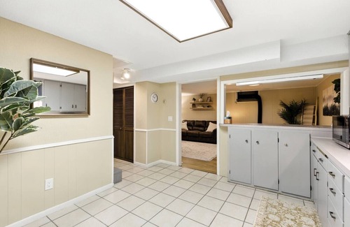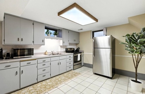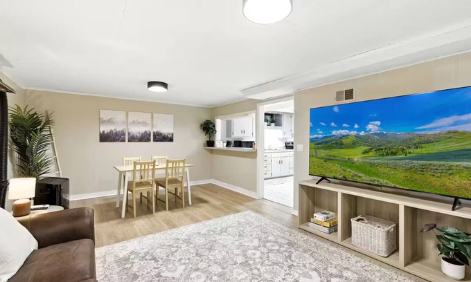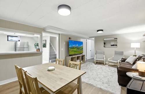 Relax in style at our spacious lower unit in Maple Lake! Enjoy a massive 75″ Smart TV, plush couches, and a roomy dining area perfect for gathering. The fully stocked kitchen comes with all cooking essentials plus complimentary water and snacks. Drift off on 12″ memory foam beds and pillows. Nestled in a quiet neighborhood, close to parks and surrounded by Minnesota’s beautiful lakes, this retreat blends comfort, convenience, and relaxation!