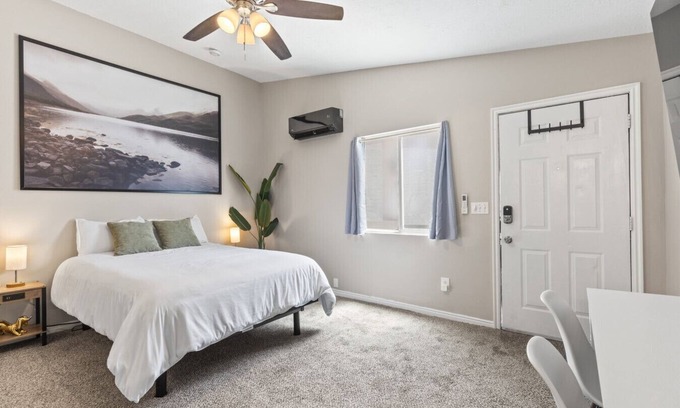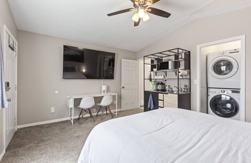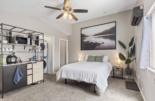 Welcome to your cozy 1-bedroom studio in Millcreek, Utah! This charming space includes a kitchenette, in-unit laundry, a spacious closet, bathroom with shower, adjustable Temperpedic bed, 75 inch 4K TV, and a private entry for total independence. Perfect for couples, solo travelers, or business guests, enjoy all the comforts of home in a peaceful area. Centrally located near local restaurants, shopping, parks, and just minutes to downtown Salt Lake City, skiing, and hiking adventures.