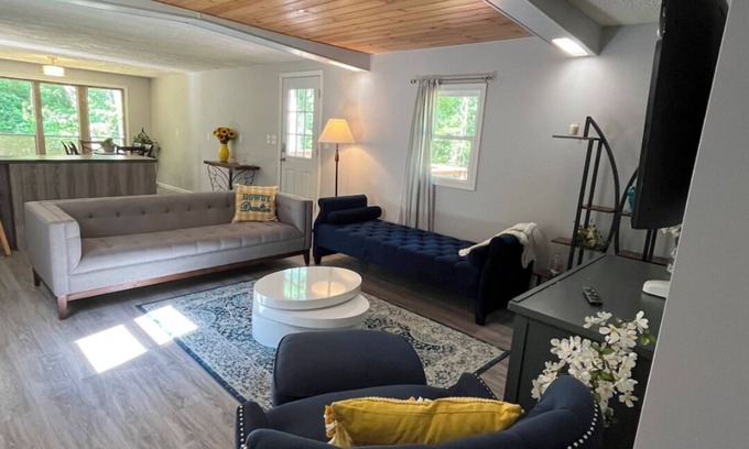 Welcome to our Cozy modern cabin in the woods. This 2 bedroom, 1 bathroom cottage combines contemporary decor with modern amenities and an experience all can enjoy. Nested in a quiet wooded area where you can enjoy nature and the creatures who live here. Enjoy your coffee out on the deck, without the noise, and hustle and bustle of the city.