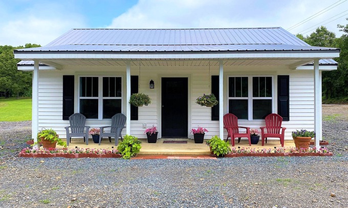 Built in 2021 and measuring 925 square feet, our Cottage features a full kitchen complete with all the appliances you need to make yourself at home. A hot tub with a privacy fence sits under the covered patio in the backyard, with relaxing and cushioned furniture. There is a fire pit with Adirondack chairs for you and your friends and family to enjoy. The living room features a smart TV and a queen size sleeper sofa. Each bedroom features a queen size bed and private bathroom with a shower/tub combo. A Washer and Dryer is available for use in the laundry room. Local Dollar General is conveniently 5 minutes away and a Beer and Wine store is 6 miles away if you forgot anything for your trip.