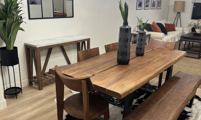 Best-rates for the Cozy Modern Farmhouse Apartment starts from $134 per night with includes Parking, TV, Security/Safety, Bedding/Linens, Child Friendly, Laundry, Air Conditioner, Wellness Facilities, Fireplace/Heating, Internet, Kitchen with all other amenities. Perfect for Weddings is committed to ensuring every guest experiences a comfortable and extraordinary stay, whether planning a romantic getaway, a honeymoon, a pet-friendly stay, or celebrating with the entire wedding party.