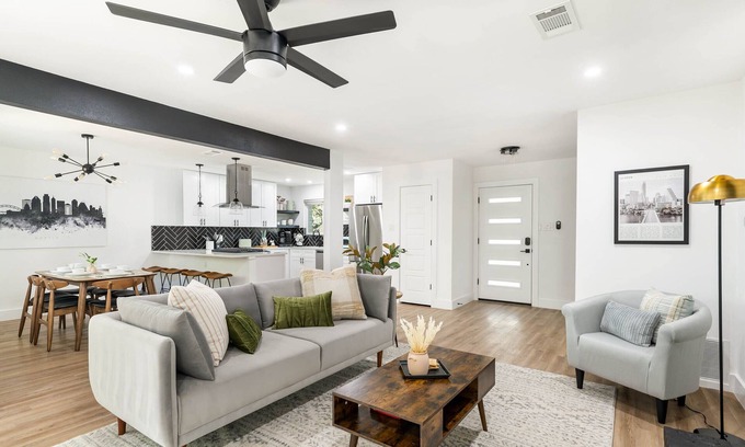 Welcome to the Anderson Mill Haus, your home away from home! Unwind and relax in this professionally renovated, thoughtfully designed, and fam/pet friendly home, ideally located in a peaceful neighborhood yet with plenty to do. Whether you are here for school, business, or adventure, there is something for everyone. Explore the beautiful Lake Travis, enjoy a game at Q2 Stadium, or go shopping at The Domain. This house is located just 20 minutes from the Downtown Austin and very close to Apple Campus, The Domain, Q2 Stadium, Lake Travis, COTA, UT Austin, shopping centers, grocery stores, and more. The opportunities to explore are endless!