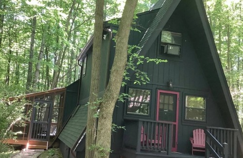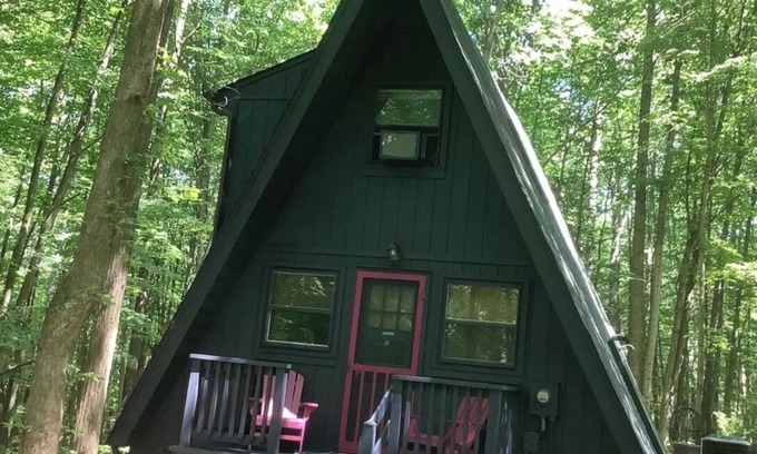 Ode to Joy is a renovated A Frame Cabin located at the end of a private road in the community of Coolfont Mountainside in Berkeley Springs WV. We made sure our place was unique - Its by far The Coolest Cabin in Coolfont ! Featured on Cabin Porn and many travel blogs on Insta. It’s a traditional A Frame with two bedrooms two bathrooms , A tiny but functional kitchen with smaller appliances ( fridge , stove pots pans and dishwasher ) New sofa ( June 2021) , laundry - even a wine fridge !