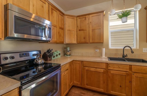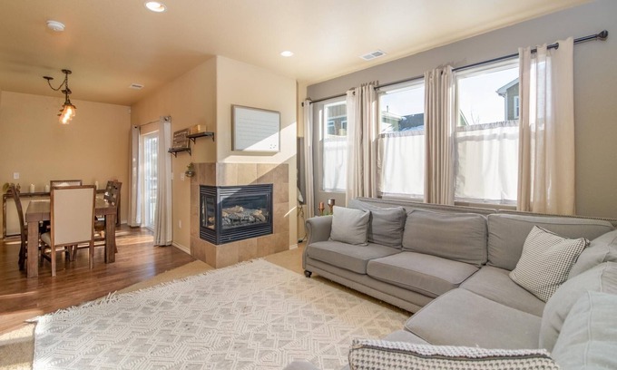 Unwind in a clean and cozy living area with large windows, soft natural light, and a fireplace to warm up after a day of exploring. The open-concept layout connects the living room, dining area, and kitchen—perfect for couples, families, and a fun weekend away! This home has also been thoughtfully set up to be completely family-friendly. If needed, I can provide a pack and play, stroller, toys, highchair, bouncer, and baby monitor — everything to help make traveling with little ones easier and more comfortable.