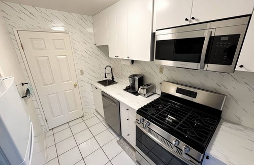 (Gas Range, Microwave, Dish Washer, Fridge with Top Freezer, Toaster, Coffee Maker, Basic Utensils)
