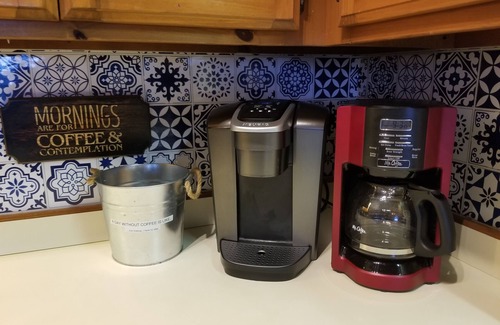 The main level has one step from the driveway into the house for easy access for limited mobility guests. Main level features 2 bedrooms (1 king and 1 queen) and a full bath with walk-in shower. Perfect for guests of all ages and physical abilities. The main level also has a fully-stocked kitchen, dining area for 6 and den with wood-burning fireplace and gas starter! (Firewood available seasonally.)