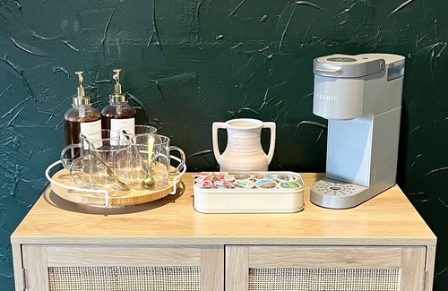 Enjoy a nice cup of coffee from the coffee bar and enjoy the 55 inch smart TV.