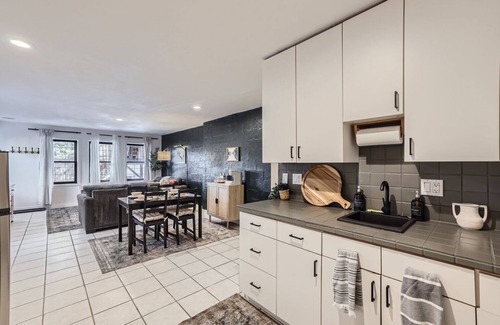 The space can fit 4 guests. One bedroom with a King Casper mattress and a pull-out sofa with Queen Tempurpedic mattress.