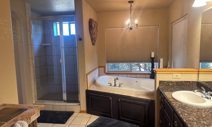 Get ready to relax in this 5-bedroom house in Pagosa Springs. With 1 king bed, 4 queen beds, and 2 bunk beds, this enchanting property is perfect for large groups. The 4 bathrooms feature a bathtub, bidet, and jetted bathtub, ensuring guests have a nice stay. Kickback, relax, and enjoy everything Pagosa Springs and our house has to offer.