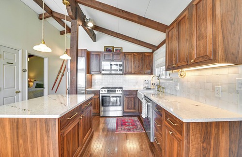 There's no shortage of scenic views and 'hygge' vibes at this 2-bedroom, 1-bath vacation rental, ideal for cozy cabin weekends all season long. Journey out to carve fresh tracks in winter, hike Kaaterskill Falls in summer, or leaf-peep along the beautiful Windham Path. Back home, soak in the stunning mountain views fireside or from the toasty bliss of the private hot tub. The Catskills are calling!