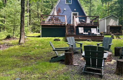 Charming A-frame cabin nestled in Michaux State Forest. Enjoy the sounds of Mountain Creek from the comfort of the deck or relax on the bench by the water's edge. The cabin offers comfortable accommodations with 3 queen beds and a full bathroom. For those seeking adventure, the cabin is close to the 1/2 way point of the Appalachian Trail. Several lakes are within a few miles of the cabin for swimming and fishing. When you return, unwind around the fire pit and take in the peaceful surroundings.