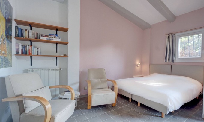 - Agréable Studio Dans Jardin Paysager Avec Piscine et Grande Cuisine D'été