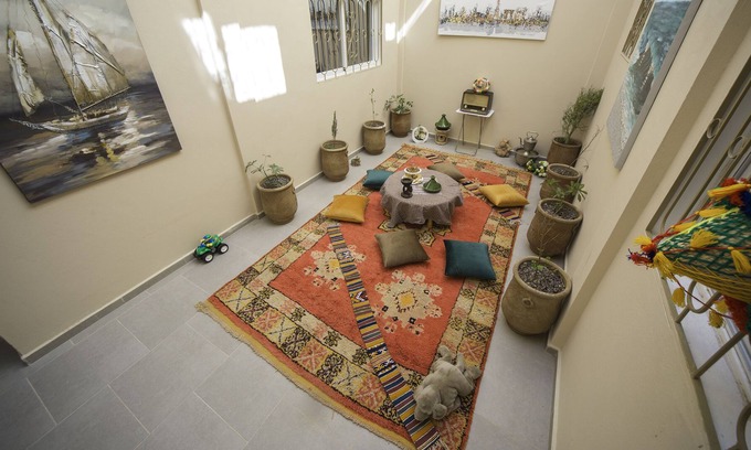 Ideal for four to six people, the apartment where you will stay includes: a generously spacious chic living room furnished with large and comfortable sofas all new in modern Moroccan style, a large bright and warm bedroom with a soft double bed , a second bedroom for your small children also silty and sunny with two single beds, a bathroom of course and a well-equipped kitchen. All household appliances are available for your comfort.