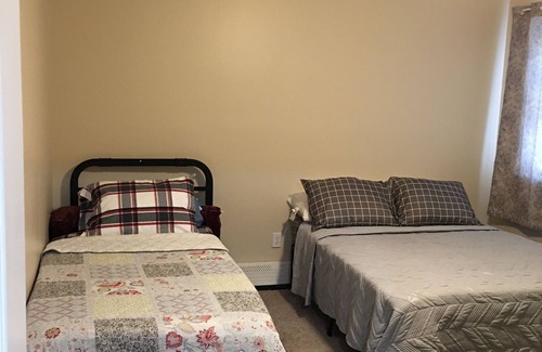 Enjoy a relaxing living room space, spacious master bedroom and kid’s room if needed. Dine-in Kitchen with microwave, refrigerator and table top stove/hot plate. Prepare coffee and hot beverages for breakfast. For groups of more than 3 ADULTS there’s a $50 a night charge for the extra bedroom.