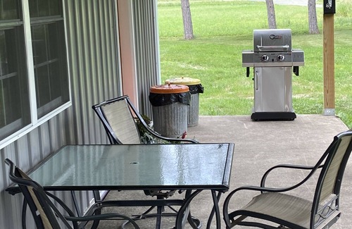 Queen bedroom and futon in the living room sleeps 4 comfortably. (Additional tent camping may be available, please ask!)
