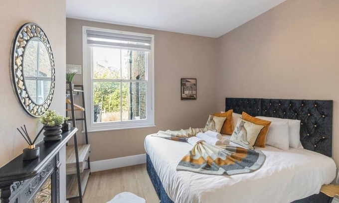 Centrally located in a quiet residential street, this stylish and cozy 2 bedroom home makes the perfect choice for a peaceful stay next to the park, offering super king size beds, big comfortable bathroom, fully supplied kitchen and access to private garden.