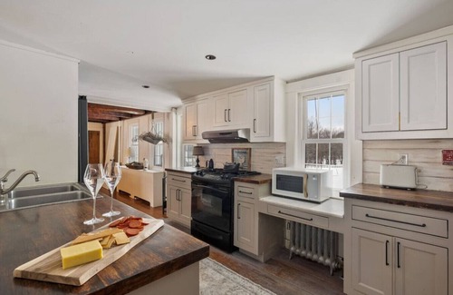 A rustic modern farmhouse apartment on a real working farm in Gilmanton. Watch mini cows graze from your porch, hike trails with views of the Belknaps, or sign up for farm yoga and a horseback ride. Inside, you'll have plush leather seating to sink into, a wood stove, and a full kitchen. 20 minutes gets you to Gunstock, Lake Winnipesaukee, and live music.